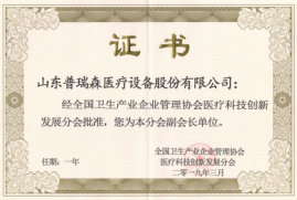 ——熱烈祝賀山東普瑞森醫(yī)療設(shè)備股份有限公司被評(píng)為副會(huì)長(zhǎng)單位