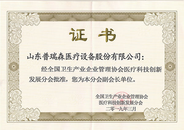 ——熱烈祝賀山東普瑞森醫(yī)療設(shè)備股份有限公司被評(píng)為副會(huì)長(zhǎng)單位