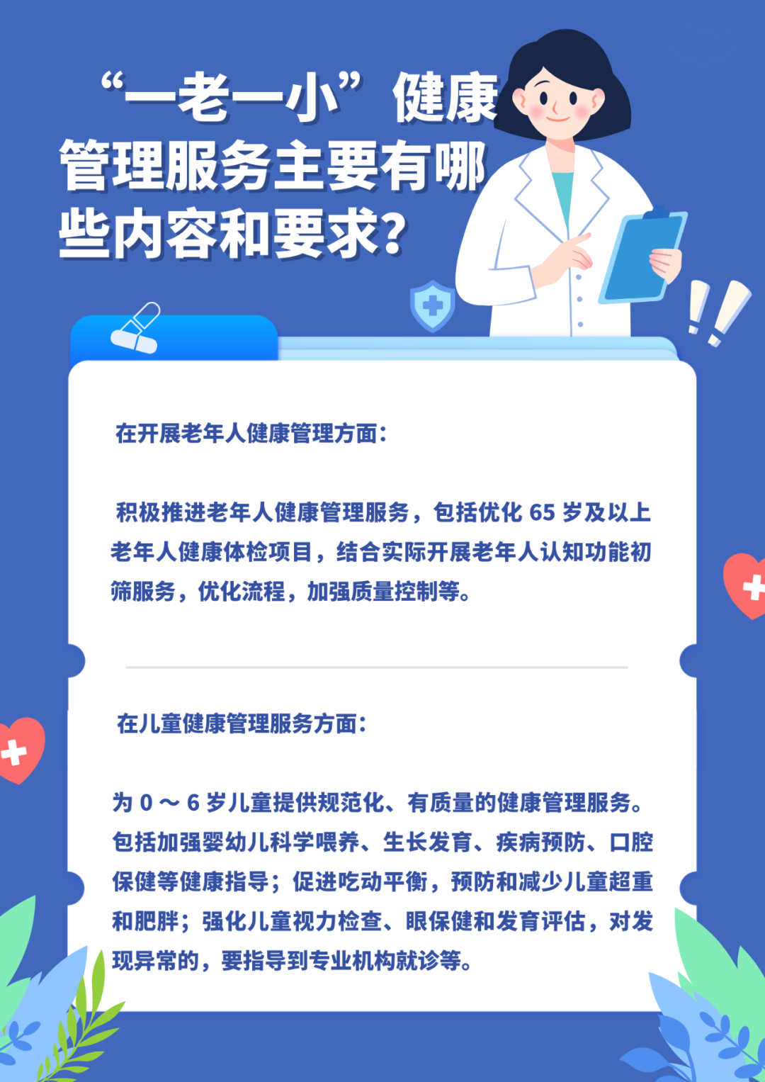 基層醫(yī)師公社梳理發(fā)現(xiàn),“一老一小”服務(wù)內(nèi)容上也有所調(diào)整,具體為: